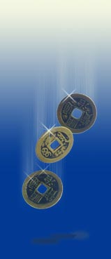 2、将合于手中的三枚古币严肃而又虔诚地掷于桌上或地面(桌上、地面必须清洁),连续六次,这就是起卦。并记下每一次几个正、几个反。